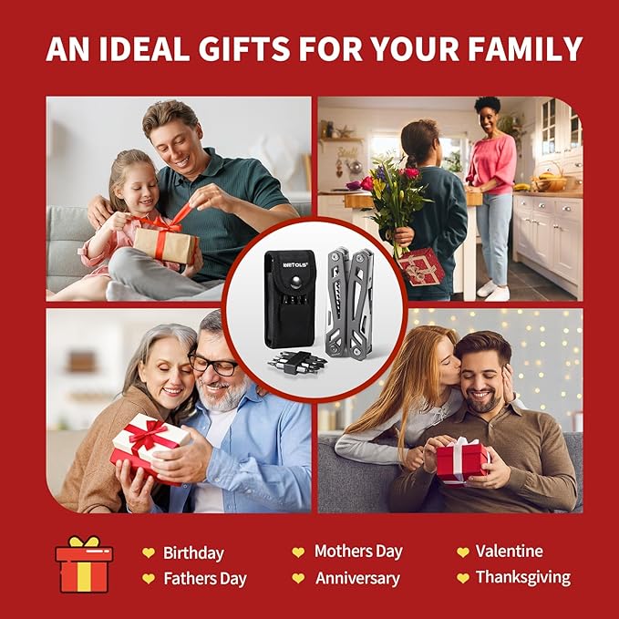 - 【Ideal Gifts for Men 】This multitool pliers is a great mothers/fathers day gifts for mom/dad or birthday gifts for men/women. It is also a suitable anniversary gifts for men, or give as a gifts for boyfriend on Valentine's Day, Thanksgiving Day, Christmas