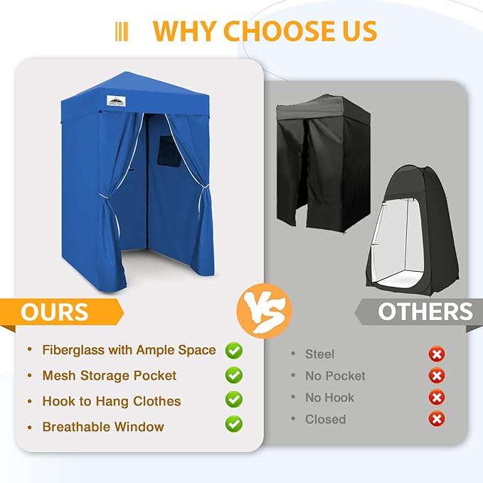- INSTANT PRIVACY CHANGING ROOM: 4x4 changing tent for one or two people. Perfect as a changing room or sun cabana for outdoor activities: fashion show, photoshoot, camping, backyards, pool party or a showering tent, portable toilet shelter .
