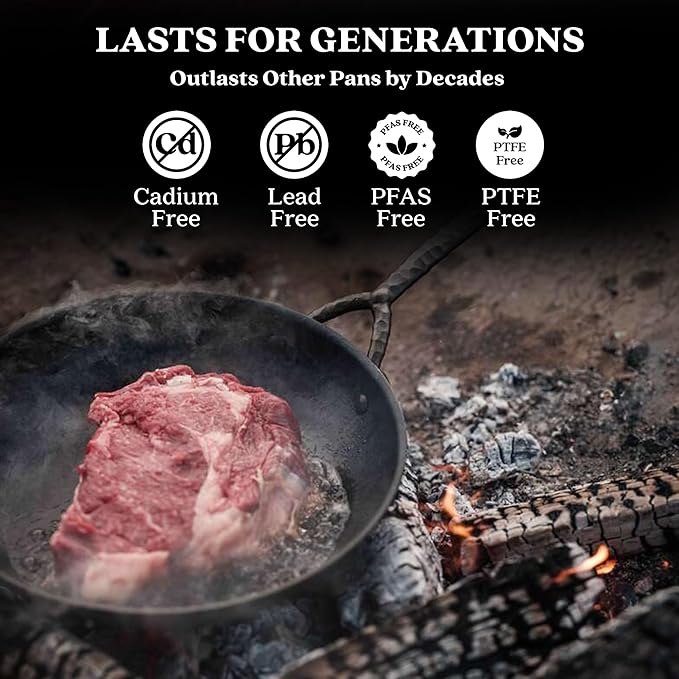 - Value in Every Detail: Alva Artist is a beautiful range dedicated to passionate chefs. The natural patina layer on the blue carbon steel pan is constantly improving. The darker the coloring, the more effective the nonstick layer. Our pan is ready to use with its uncoated blue carbon steel material and pre-seasoned cooking surface. Our cast stainless steel handle with hammered pattern ensures low thermal conductivity which keeps the handle cool during cooking and gives the handle a firm grip.