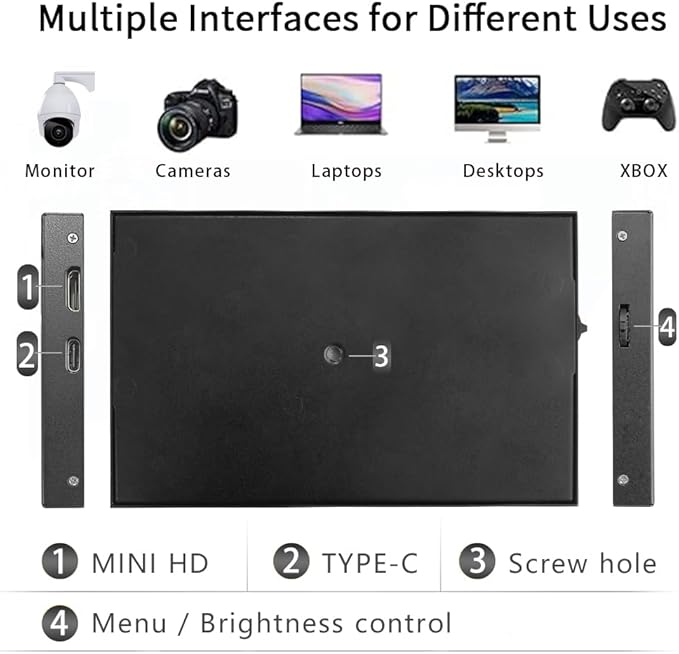- ๐ Extensive Compatibility - portable monitor features 1 full-featured Type-C ports and 1 MINI HDMI port. You can easily access your favorite devices with just one USB Type-C or MINI HDMI cable.