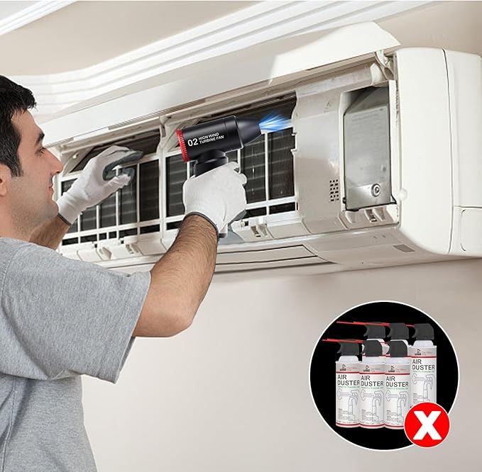 - 【Alternative to Compressed Air Can】This jet dryer blower boasts a compact design,measuring just 6 inches in length,making it convenient for portability. Compared with compressed air can, our jet dryer blower can be recharged and used repeatedly, No liquid or ice formation occurs during cleaning. It protects your electronics from liquids.