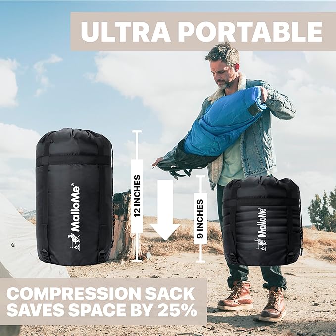MalloMe Sleeping Bags for Adults Cold Weather & Warm - Backpacking Camping Sleeping Bag for Kids 10-12, Girls, Boys - Lightweight Compact Camping Essentials Gear Accessories Hiking Sleep Must Haves