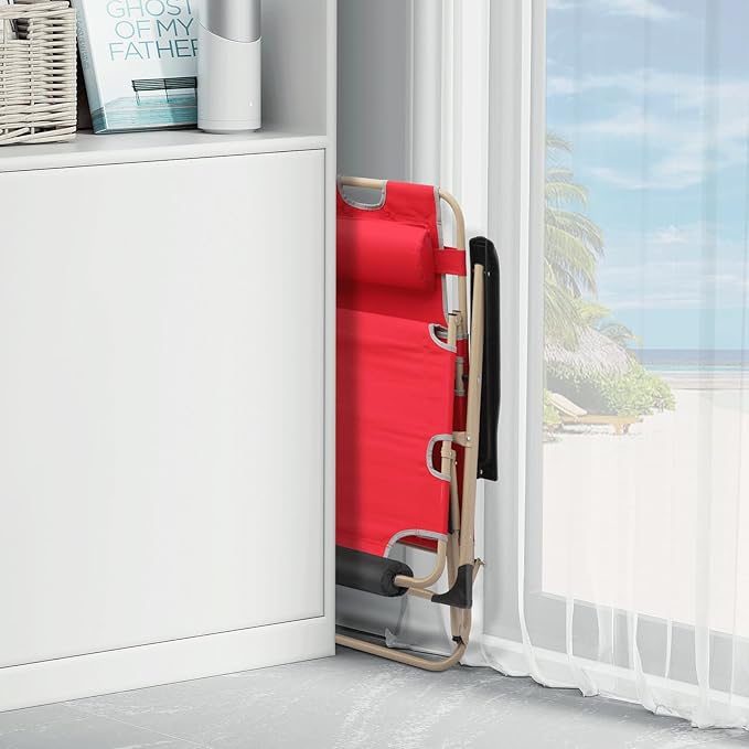 MoNiBloom Set of 2 Folding Reclining Patio Chairs, 3-Position Patio Lounger Folding Chairs with Footrest for Backyard Poolside Lawn, Red, 330lbs Capacity
