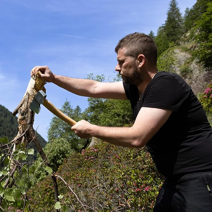 - HICKORY HANDLE FOR DURABILITY - Designed with American hickory, this handle absorbs shock and offers superior strength. Featuring refined root wood sublimation, the hickory handle enhances grip and style, making it an ideal choice for cutting, chopping, bushcraft, or camping hand ax needs.