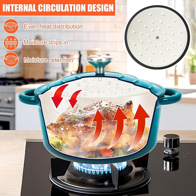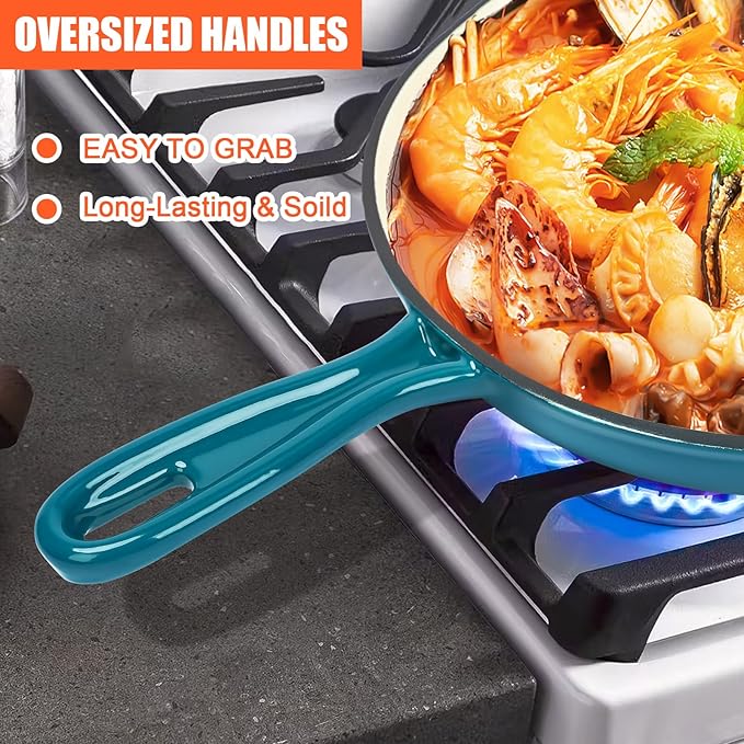 - 🔥【Easy To Cook And Clean】The smooth porcelain enameled interior reduces sticking and aids caramelization. Dishwasher-safe, but hand-washing with warm soapy water and a nylon brush keeps it new for years. This set transforms cooking and dining
