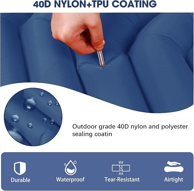 - 【Tough Nylon & Super Comfortable】Camping sleeping pad made of outdoor grade material nylon and inner TPU sealing coating, long - lasting, hard wearing, no tearing and easy to clean. Ergonomic design allows you to sleep soundly even in rough outdoor environments.