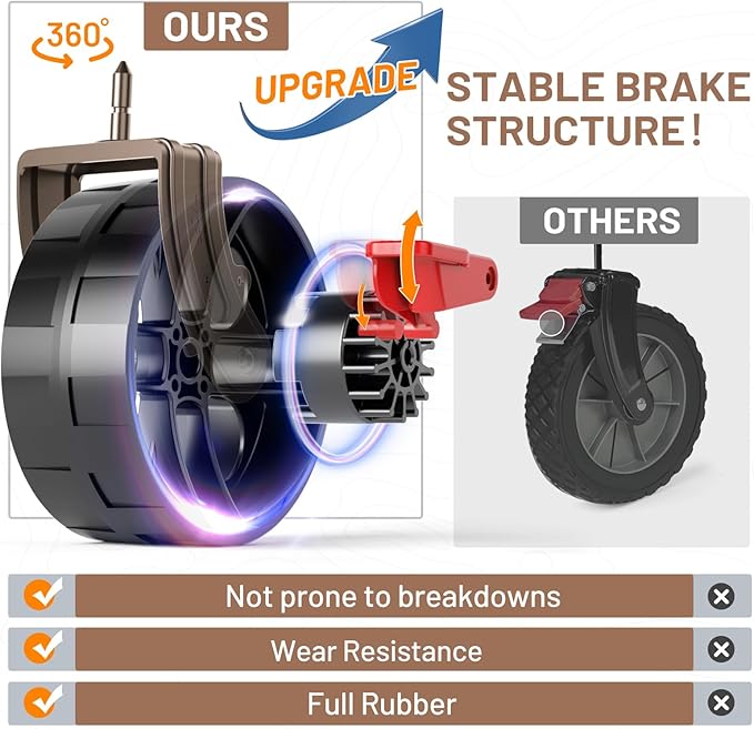 - ALL-TERRAIN PERFORMANCE: Equipped with 7.5" diameter all-terrain wheels with brakes,the middle tread is made of rubber, quiet and wear-resistant; 360° rotating front wheels and enable this wagon to maneuver easily.