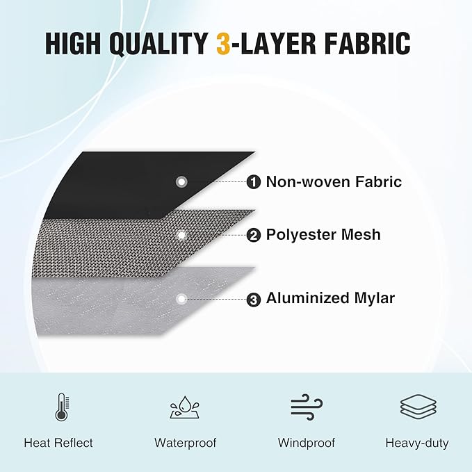 - High Quality Material: This heat reflective blanket is waterproof, windproof and has excellent heat retention. Made of non-woven fabric and polyester mesh combined with aluminum mylar coating.