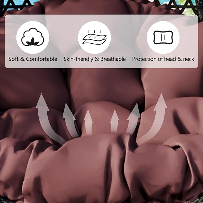 - 【High Quality Egg Chair】The strong suspension chain can hold up to 350 pounds and it's easy to adjust the height to fit what you need. The seat cushion and pillow headrest are made of 100% polyester and soft cotton. They're as soft as a cloud, breathable, comfortable, don't fade easily, and give enough support for a more relaxing and comfy experience. You can wash the seat cushion directl