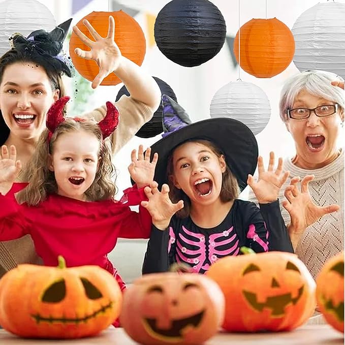 - ?�Package includes?? Orange black white paper lanterns package with 12 paper lanterns, including 6 inches, 8 inches, 10 inches and 12 inches. Each size includes 3 paper lanterns, which are perfectly matched to create an atmosphere.