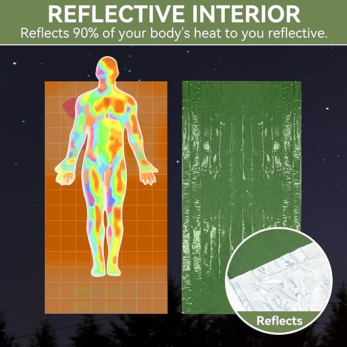 - Ultra-bright Reflective Surface: Trapped in the dark? Let this Survival Blanket Bag light the way. The bright orange emergency sleeping bag and its reflective surface will provide crucial visibility and help first res-ponders find you.