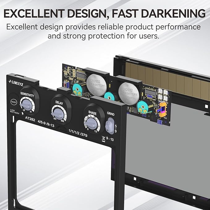 - [AUTOMATIC DARKENING FILTER] Welding hood has four arc sensors, built-in sensitivity, delay control adjustment knob and low voltage alarm, which can change from bright to dark within 1 / 10000 seconds. In MIG / ARC/ PAW welding and CUTING