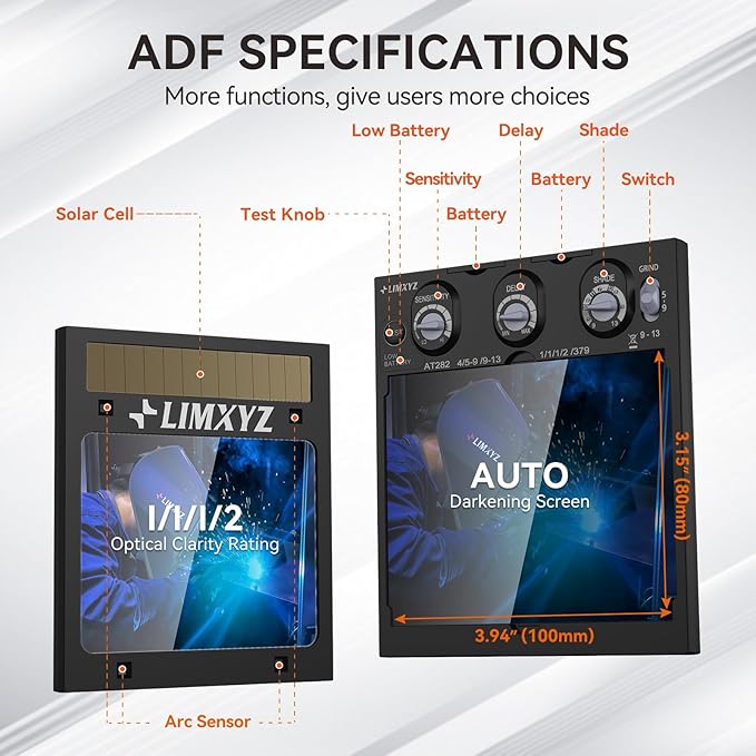 - [EASY AND COMFORTABLE] The LIMXYZ welding helmet is well-made and weighs only 1.1pounds. It can significantly reduce the burden of the cervical spine during work, Dynamically adjustable headwear with breathable padding makes you feel more comfortable
