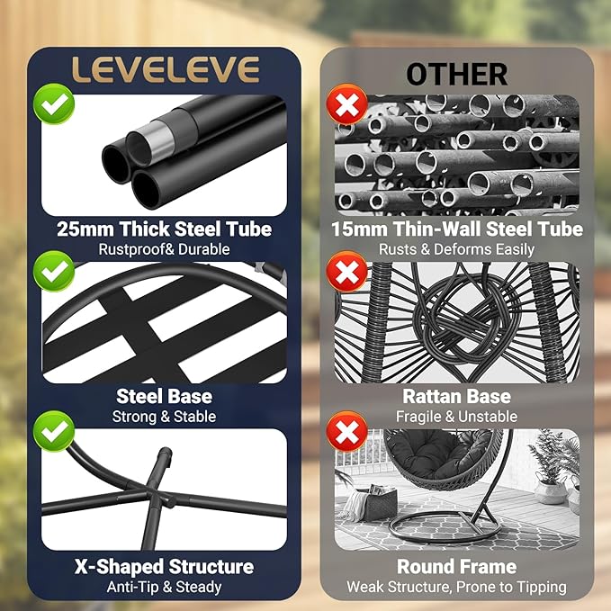 - 【Sturdy and Durable】:This egg chair with Stand is made of durable waterproof wicker and supported by a sturdy heavy-duty aluminum steel frame, with a weight capacity of up to 350 pounds, ensuring years of use.