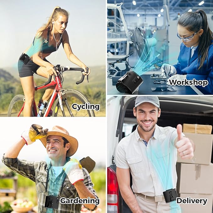 - Hands-Free Design: Two sturdy metal clips allow to clip the fan to belt or tuck it under shirts for direct cooling. A lanyard for neck use and a stand for desktop use, suitable for gardening, hiking, and workshop