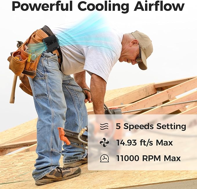 - Powerful Cooling for Worksites: With 5 speeds, up to 11000RPM and 16.4 ft/s airflow, this belt fan provides instant cooling, perfect for construction sites, factories, warehouses, and farms