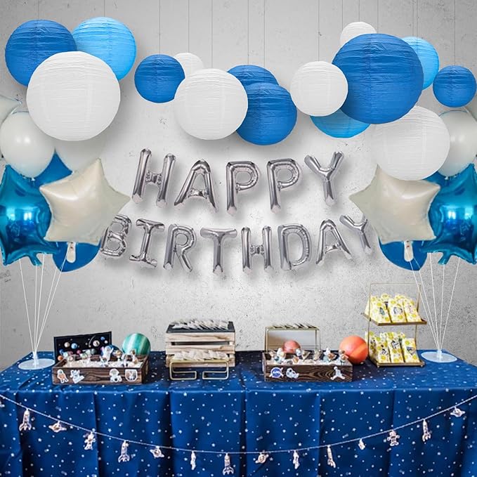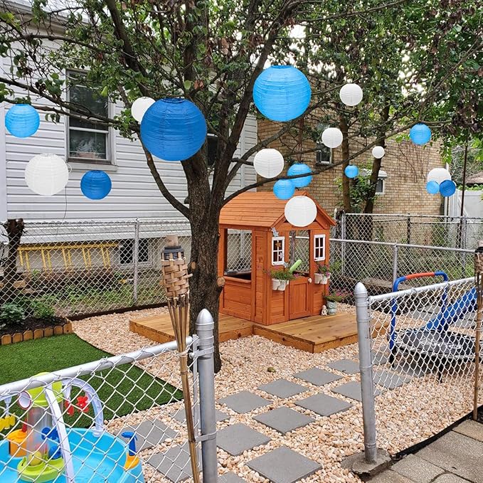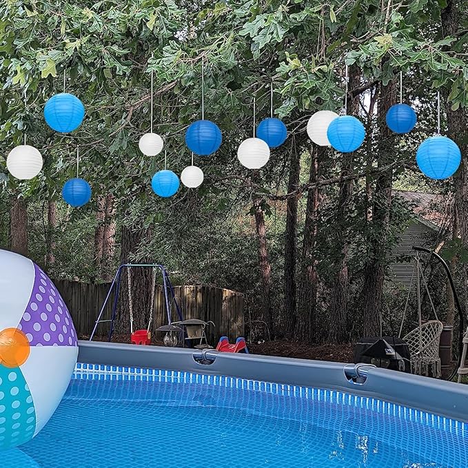 12Pcs Round Paper Lanterns Assorted Sizes (6" 8" 10" 12") for Home Decor, Restaurant, Church, Wedding, Birthday Party Decorations, Hanging Chinese Japanese Paper Lantern Lamps (Blue Series)