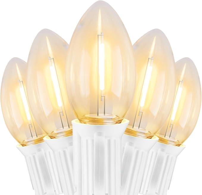 - Old Fashioned Appearance and Dimmable: White wire C9 LED Christmas lights follow the shape of old fashioned bulbs with warm white lighting effect, creating a warm, harmonious and comfortable atmosphere, lighting up your life and creating exclusive memories for you