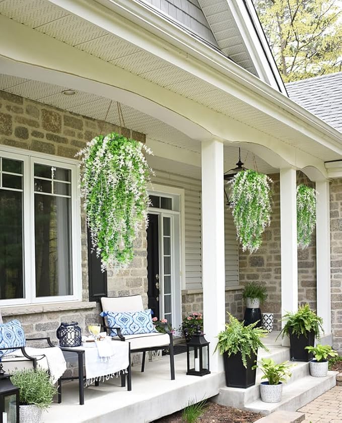 - 【UV Resistant Plastic Plants】Artificial fake hanging plants for outdoor are UV resistant, more realistic, natural vibrant color,no need to worry about watering, pruning,Fake hanging plants can be washed by water and can be put anywhere the hot or cold weather.