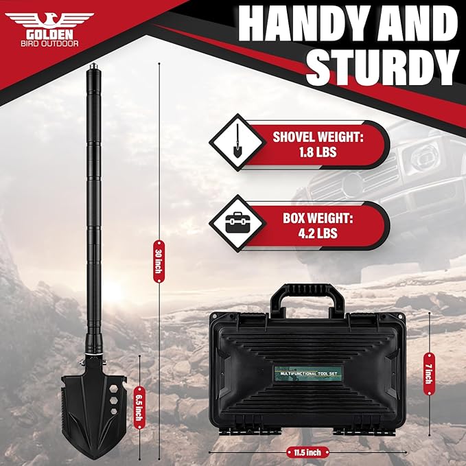 Golden Bird Survival Shovel Set - Multi-Tool Folding Camping Shovel with Carrying Case for Outdoor, 30 Inch Lengthened Handle Tactical Shovels, Off-Road, Gardening, Beach, Sand & Snow, Car Emergency