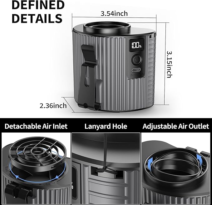 - Flexible Charging: Built in a 5V/2A Type-C charging input port, this USB fan can be fast charging support via USB chargers, laptops, computers, car chargers, and other USB-enabled devices in 2h. The LED display allows you to monitor the power level at any time