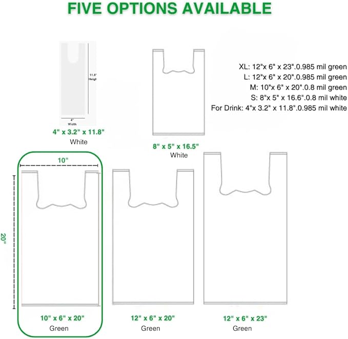 (Medium Size) OrangeBio Certified Home Compostable Shopping Bags, 500 Ct, 10" x 6" x 20", Medium, Hold 20 lbs, Thank You, Grocery, Take Out, T Shirt, To-go bags for Retail, Restaurant