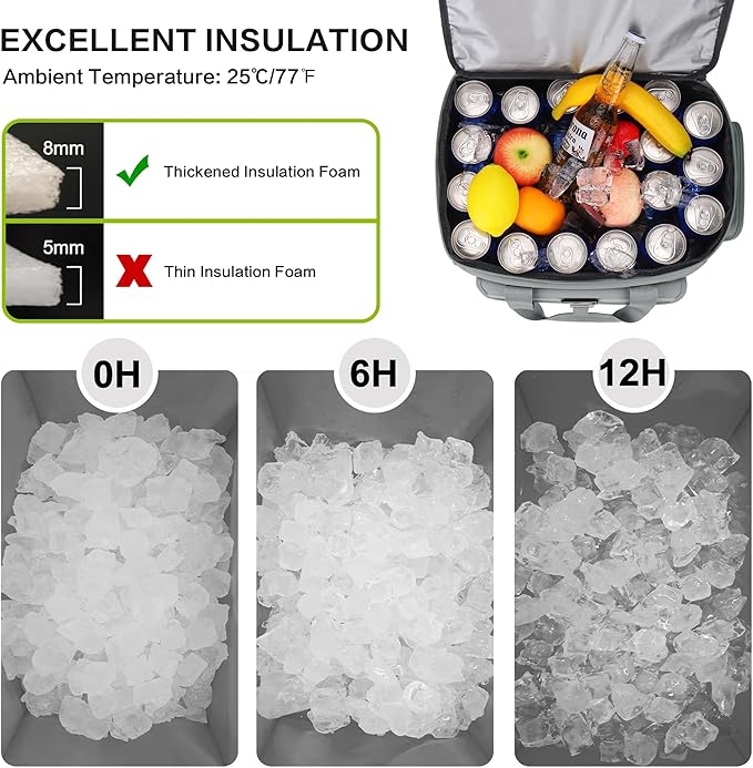 - EXCELLENT INSULATION: This soft cooler bag is equipped with 8 mm thickened foam and food-grade PEVA insulated liner can be well insulated, and ice packs or ice cubes can keep your food and drinks cool for a long time