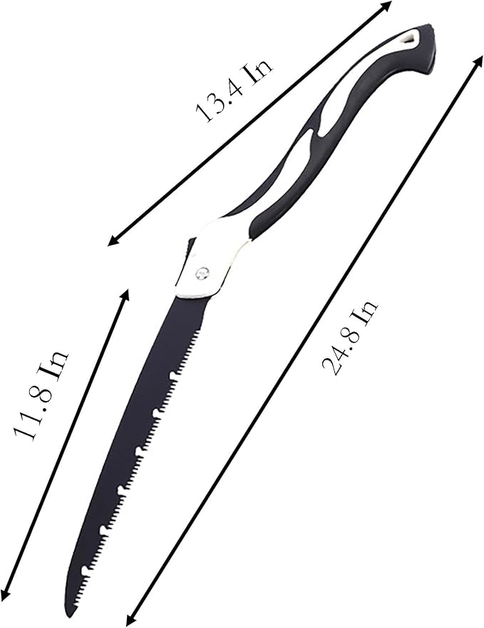 Folding Saw with Rubber Handle, 24.8 Inch Manganese Steel SK-5 Blade Pruning Saw for Hunting, Gardening, Camping and Trimming (blade 29cm)