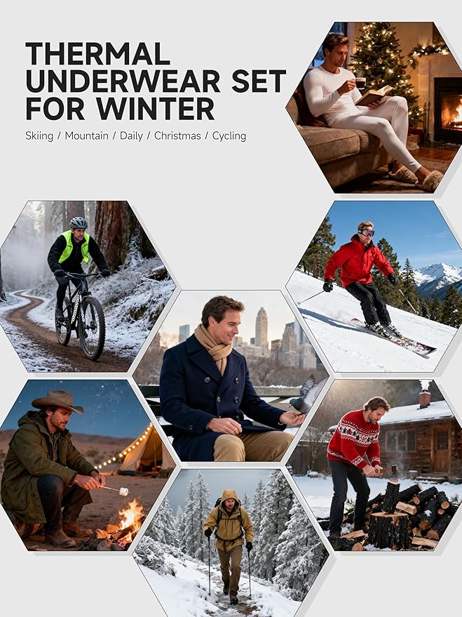 - Versatile Mens Thermal Underwear: The base layer men cold weather can not only for wearing indoors in winter, but also suitable for activities like skiing, hiking, cycling, snowboard, hunting or walking
