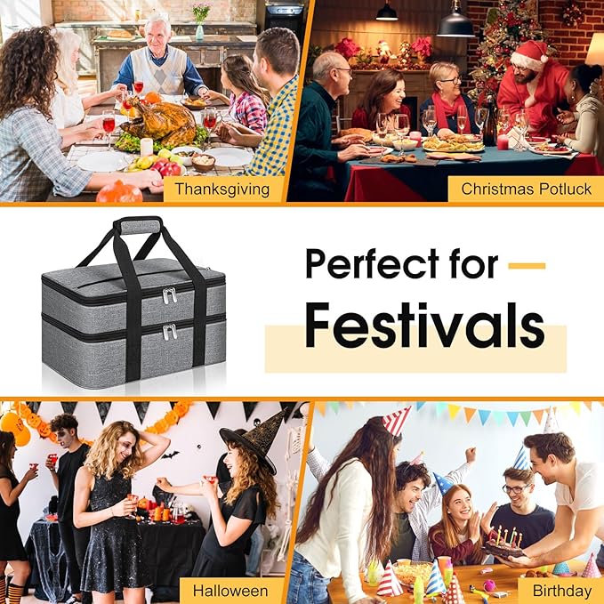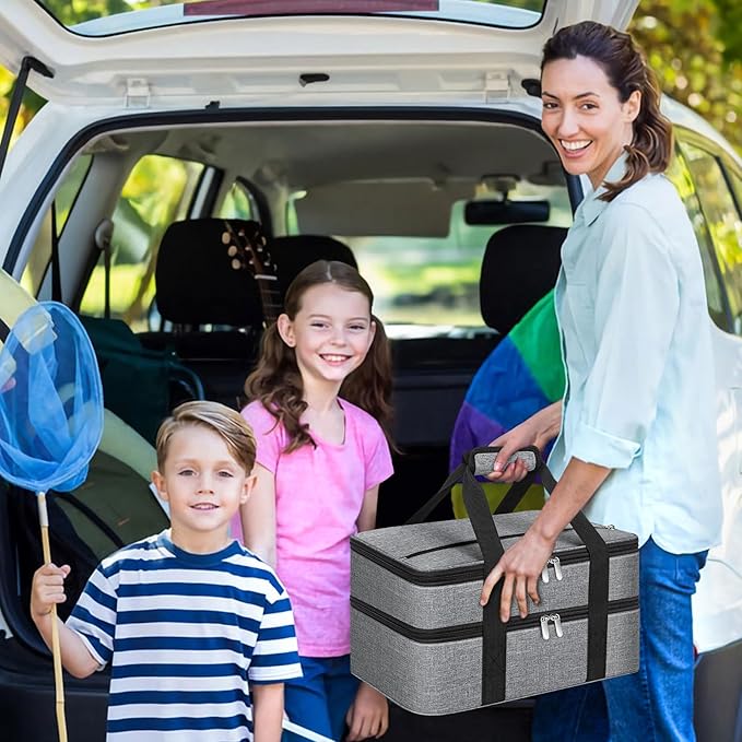 Double Insulated Casserole Carrier, Portable Casserole Carrier for Hot or Cold Food Lunch Tote Warmer or Cooler Bag, Lasagna Lunch Bag for Potluck Parties- Fits 9" x 13" Baking Dish-Grey