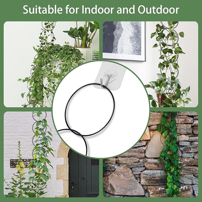 - Set Includes: Our set includes a string of 18 round plant trellis, 6 wall picture hooks, 6 wall adhesive hooks, and 20 plant ties, suitable for both indoor and outdoor plant decorations