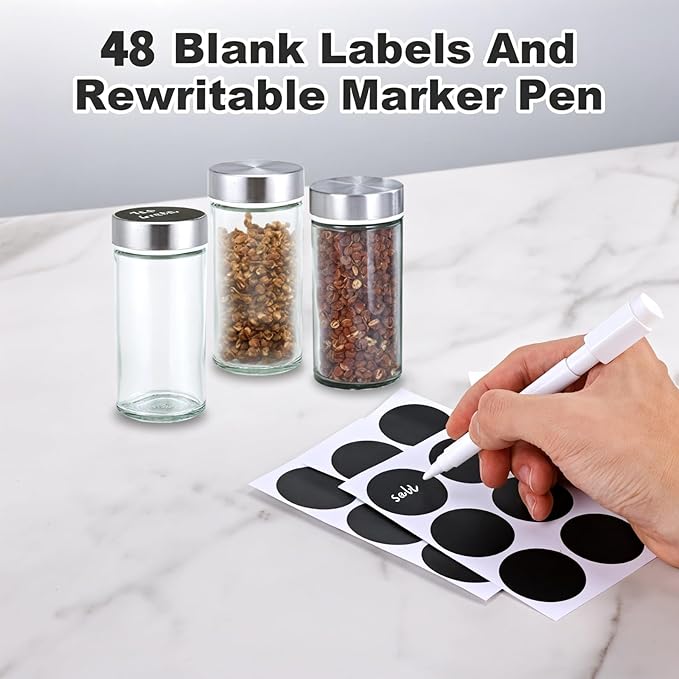 - 【16 Jar Spice Rack Set】: The complete spice organizer includes a 5-layer spice rack, 16 empty spice jars and stainless steel sealed lids, 50 blank spice labels and a DIY white marker pen to label each spice.