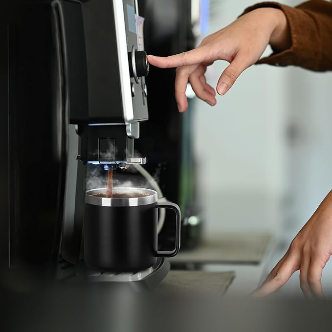 - Stainless Steel Coffee Mug: The 14oz coffee mug is ideal for home use, outdoor activities,camping, travel or work.Carry this travel coffee mug with you wherever you go