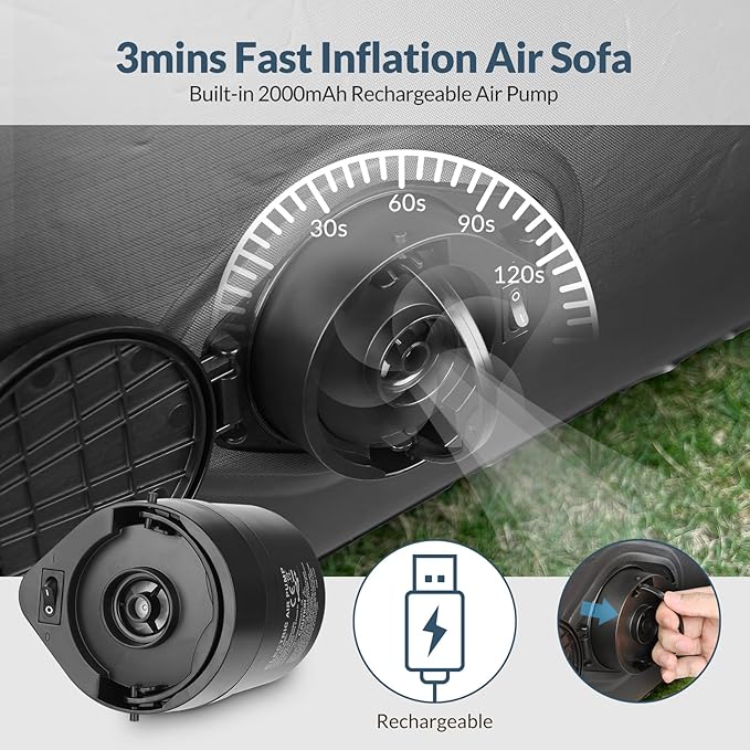 - Quickly inflation/deflation: The sofa bed couch will be inflated in 3mins, 2-in-1 valve has extra-wide openings for fast deflating
