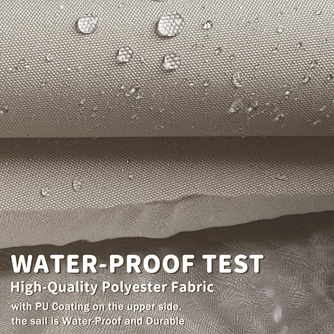 - ?�Waterproof?‘The shade sail is made of 160GSM PES material, PU coated, blocks up to 98% of UV rays, and has a shade rate of 90%- 95% (white series 85%-90%). It is resistant to light rain and has a water pressure resistance of 400 kPa. Please do not use it in heavy rain or storms