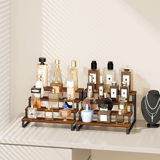Giikin 4 Tier Spice Rack, Set of 2 Wooden Spice Rack for Countertop, Kitchen Counter Storage Shelves Cupcake Stand Holder Display Stand, Rustic Brown