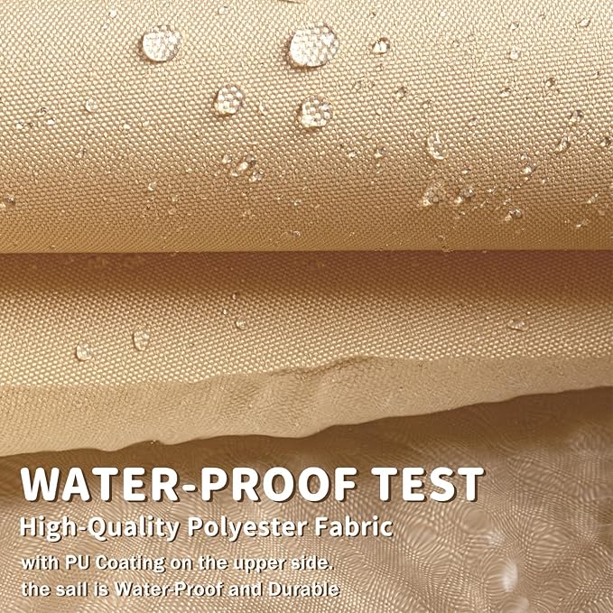 - ?�Waterproof?‘The shade sail is made of 160GSM PES material, PU coated, blocks up to 98% of UV rays, and has a shade rate of 90%- 95% (white series 85%-90%). It is resistant to light rain and has a water pressure resistance of 400 kPa. Please do not use it in heavy rain or storms