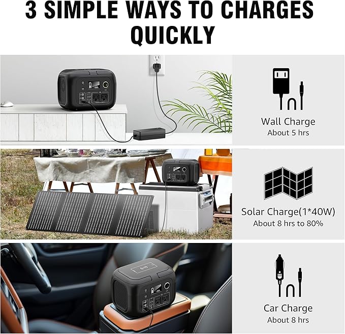 - 【Solar Generator With Solar Panel】The combination of Sinkeu 300W portable power station with solar panel 40W is ideal for overnight stays outdoors or long periods of time away from home where charging is not possible. The large capacity makes them perfect as a portable power kit for tent camping, road trips, and many other outdoor activities