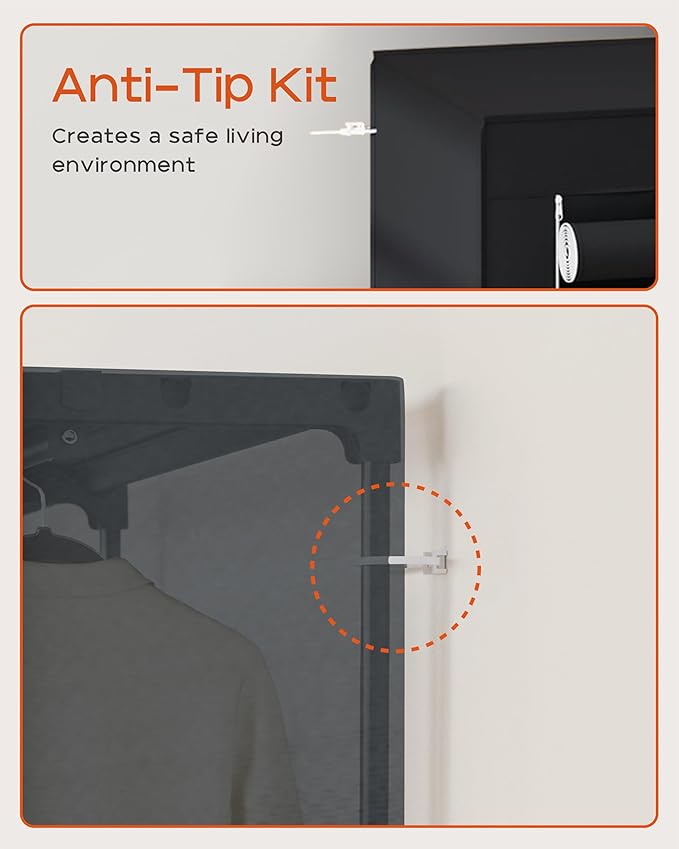 - [Anti-Tip Kit Enhanced Safety] Protect your living space with the included Anti-Tip Kit. By attaching this closet organizer to the wall, you can prevent accidental tipping and create a safer environment