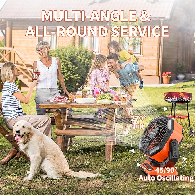 - Portable & Practical: With the automatic oscillation of 45/90° angle, the fan head can also rotate 270° up and down, easily adjusting the fan to the best blowing angle; an invisible handle on the fan head and a 360° rotating hook at the bottom, which can switch the wind direction when hanging the fan