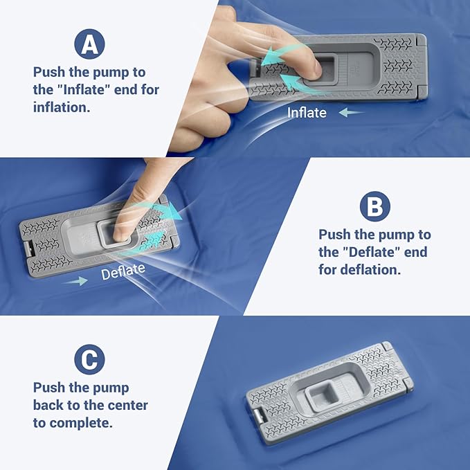 - Built-in Electric Pump for Effortless Storage: Elegear double sleeping pad comes with a built-in electric pump, realizing one-touch inflation and deflation, vacuum compression storage can greatly save storage space. With our camping sleeping pads, you'll say goodbye to the laborious inflating and storage, getting the best camping experience. NOTE: The endurance of the pump is 20 mins, and it takes 1 min to inflate and 2 min to deflate, please keep an eye on the power level when using it.