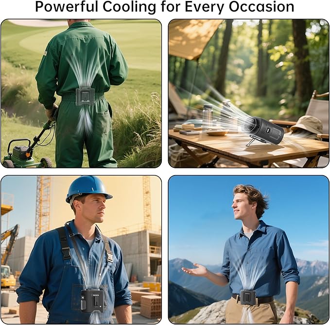 - 【Portable and Lightweight】This wearable fan is compact and lightweight, weighing only 0.83lb, making it easy to carry for outdoor activities such as yard work, fishing, hiking, jobsite and traveling, etc