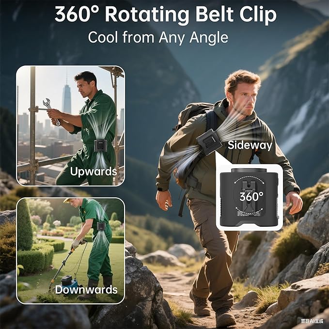 - 【Hands-Free Convenience】This waist fan features both outer and inner clips for use as a belt or undershirt fan. It can also be worn around the neck with the included lanyard or placed on a table with the fan stand. Four wearing options ensure your hands are always free for other tasks