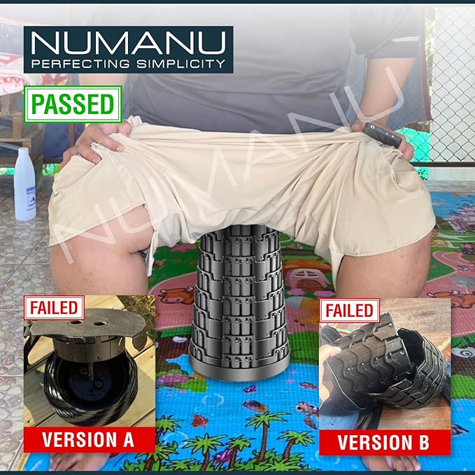 - ๐ใSELF-OPEN PREVENTION LOCKใMost Telescoping Stools do not properly lock and slip out unexpectedly while Collapsed / Closed. NUMANU's Telescopic Foldable Retractable Seat is always securely locked in place with our open-prevention Safety Lock.