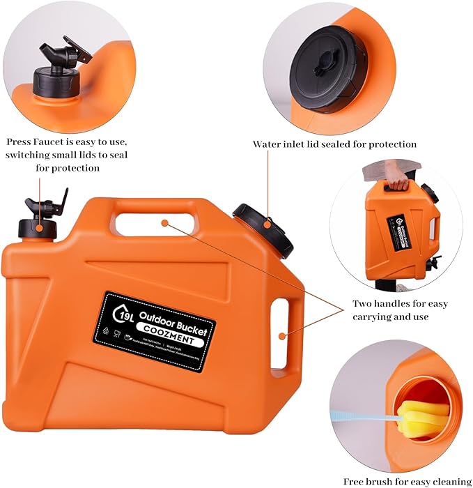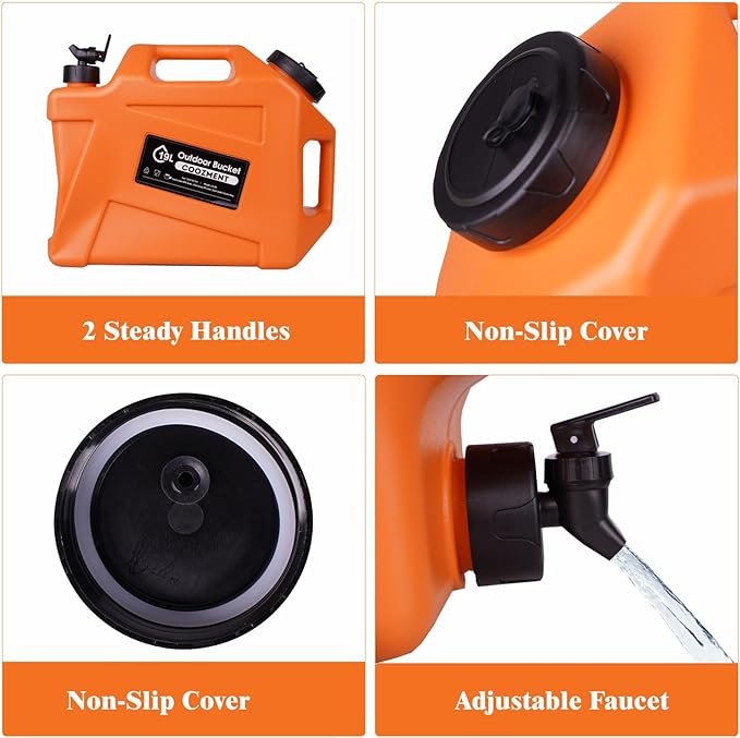 - 【Convenient Water Dispensing Design】: The Water jug has a 4" wide diameter bucket spout for easy cleaning and filling, and a unique faucet on the other part to control the dispensing speed. Compared to other Containers, you don't have to struggle to unscrew the lid, just simply press or lift to dispense water.