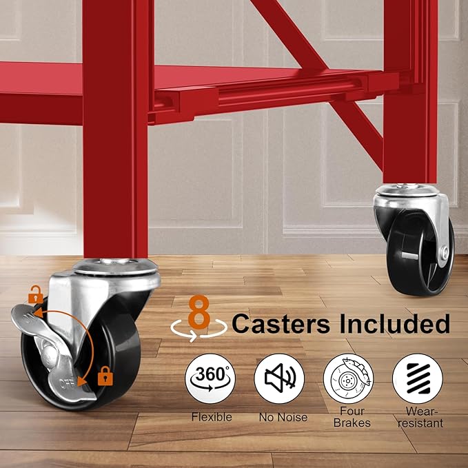 - 【360°Movable Storage Shelf Rack】The movable rolling shelf has 8 upgraded wheels (4 wheels with brakes) and 4 adjustable leveling feet. You can move the Holds 3600 pounds pantry shelves to any position you want, and move quietly.