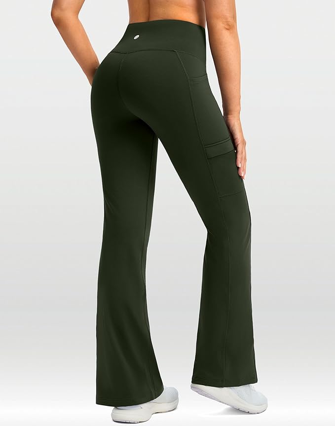 • SLIGHTLY FLARE & CROSS-WAIST: 29"/31" Inseam fleece leggings with V crossover waist making it more stylish, flattering. Slightly flared pants shape visually slims the silhouette and fits any body type