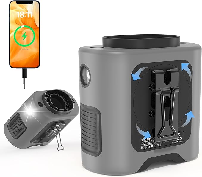 PANERGY Portable Waist Fan, 67H Runtime Wearable Fan with 4+1 Speeds, Storm Mode, 14500mAh Rechargeable Belt Fan with Dual Clip, Flashlight for Outdoor Jobsite(Grey)