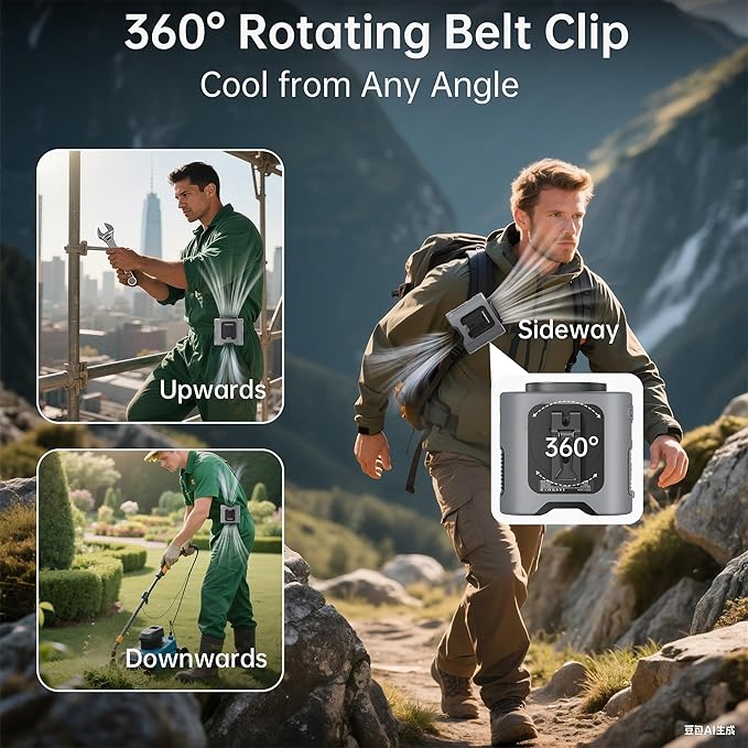 - 【Hands-Free Convenience】This waist fan features both outer and inner clips for use as a belt or undershirt fan. It can also be worn around the neck with the included lanyard or placed on a table with the fan stand. Four wearing options ensure your hands are always free for other tasks