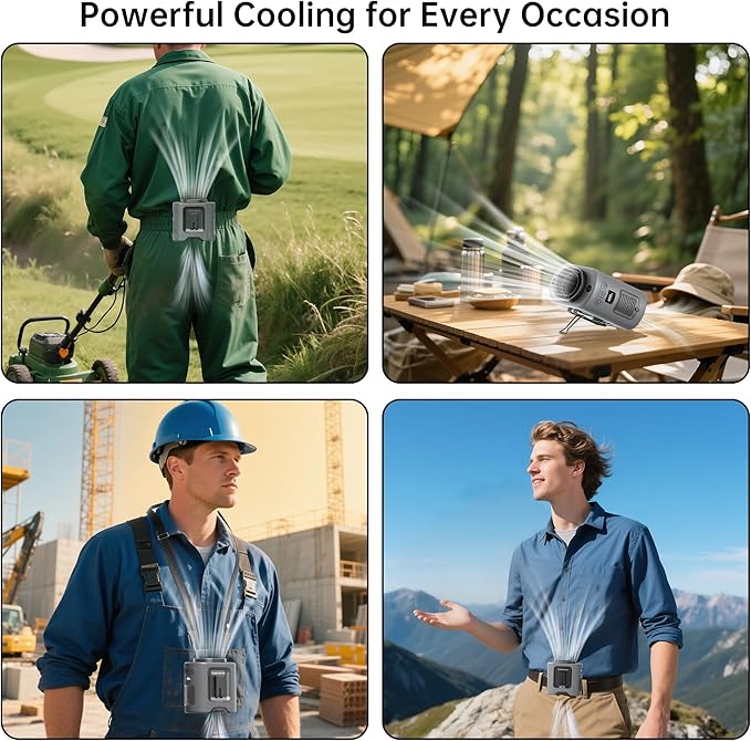 - 【Portable and Lightweight】This wearable fan is compact and lightweight, weighing only 0.83lb, making it easy to carry for outdoor activities such as yard work, fishing, hiking, jobsite and traveling, etc